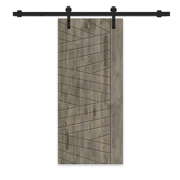42 in. x 96 in. Weather Gray Stained Pine Wood Modern Interior Sliding Barn Door with Hardware Kit