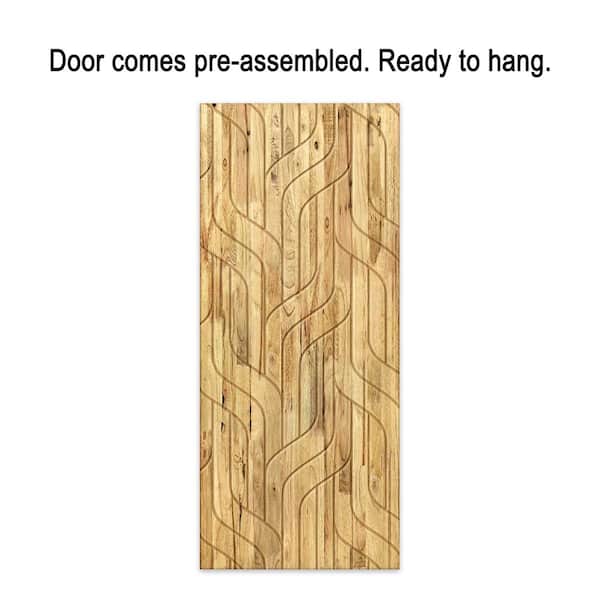 42 in. x 96 in. Weather Oak Stained Pine Wood Modern Interior Sliding Barn Door with Hardware Kit