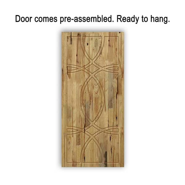 42 in. x 96 in. Weather Oak Stained Pine Wood Modern Interior Sliding Barn Door with Hardware Kit