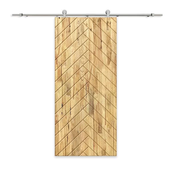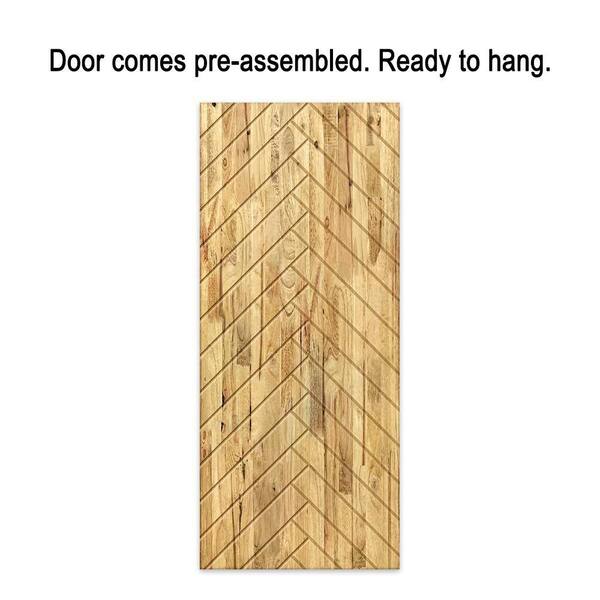 42 in. x 96 in. Weather Oak Stained Pine Wood Modern Interior Sliding Barn Door with Hardware Kit