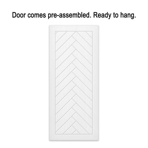 42 in. x 96 in. White Painted Composite MDF Paneled Interior Sliding Barn Door with Hardware Kit