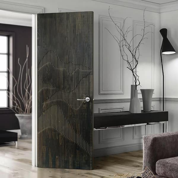 44 in. x 80 in. Hollow Core Charcoal Black Stained Pine Wood Interior Door Slab