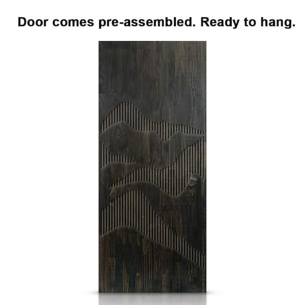 44 in. x 84 in. Charcoal Black Stained Pine Wood Modern Interior Sliding Barn Door with Hardware Kit