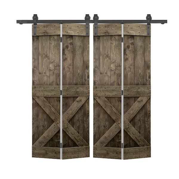 44 in. x 84 in. Mini X Series Espresso Stained DIY Wood Double Bi-Fold Barn Doors with Sliding Hardware Kit
