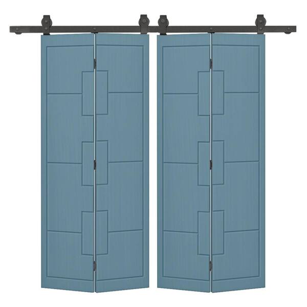 48 in. x 80 in. Dignity Blue Painted MDF Composite Modern Bi-Fold Hollow Core Double Barn Door with Sliding Hardware Kit