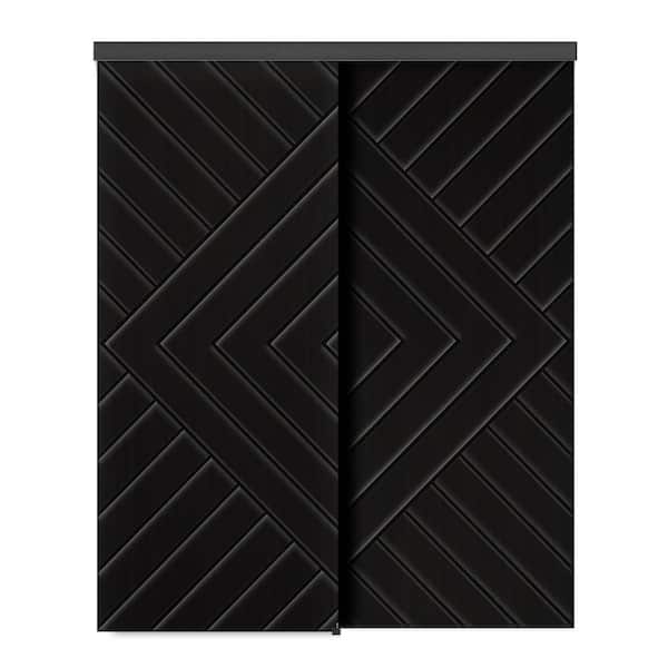 48 in. x 80 in. Hollow Core Black Stained Composite MDF Interior Double Closet Sliding Doors