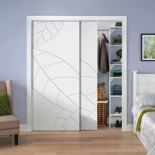 48 in. x 80 in. Hollow Core White Stained Composite MDF Interior Double Closet Sliding Doors