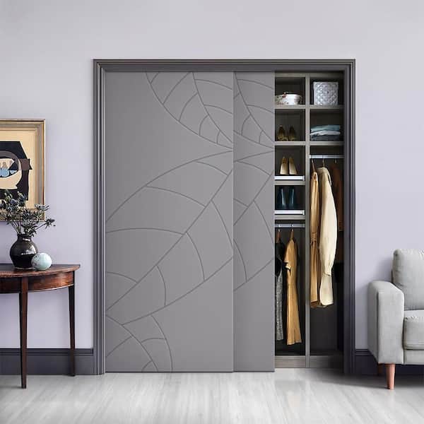 60 in. x 80 in. Hollow Core Light Gray Stained Composite MDF Interior Double Closet Sliding Doors