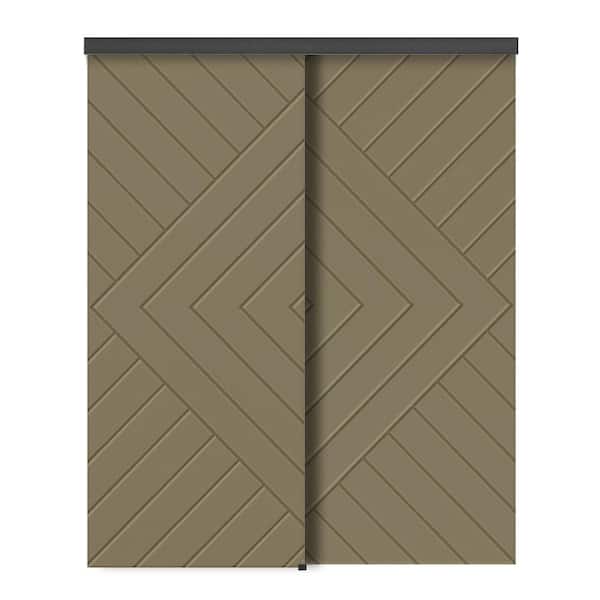 60 in. x 80 in. Hollow Core Olive Green Stained Composite MDF Interior Double Closet Sliding Doors