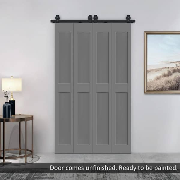 60 in. x 84 in. 2 Panel Shaker Hollow Core Unfinished Composite Double Bi-fold Door with Barn Door Hardware Kit