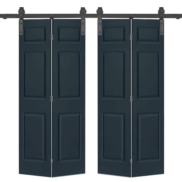 60 in. x 84 in. Hollow Core 6 Panel Charcoal Gray Painted Composite Double Bi-Fold Barn Door with Sliding Hardware Kit