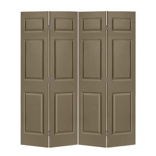 60 in. x 84 in. Hollow Core 6 Panel Olive Green Painted MDF Composite Bi-Fold Double Closet Door with Hardware Kit