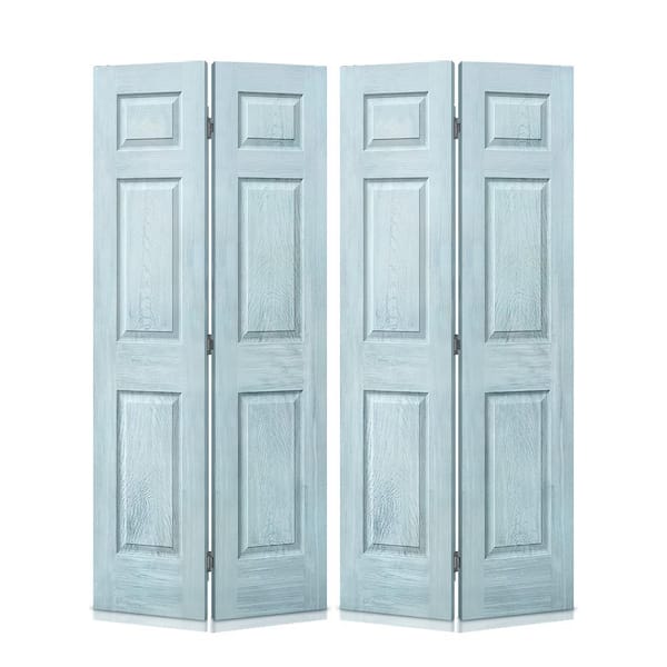 60 in. x 84 in. Hollow Core Vintage Denim Blue Stain 6 Panel MDF Composite Bi-Fold Double Closet Door with Hardware Kit