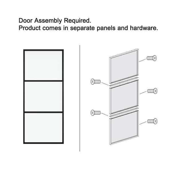 72 in. x 84 in. Frosted Glass Black Steel Frame Interior Double Sliding Barn Door with Hardware Kit and Door Handle