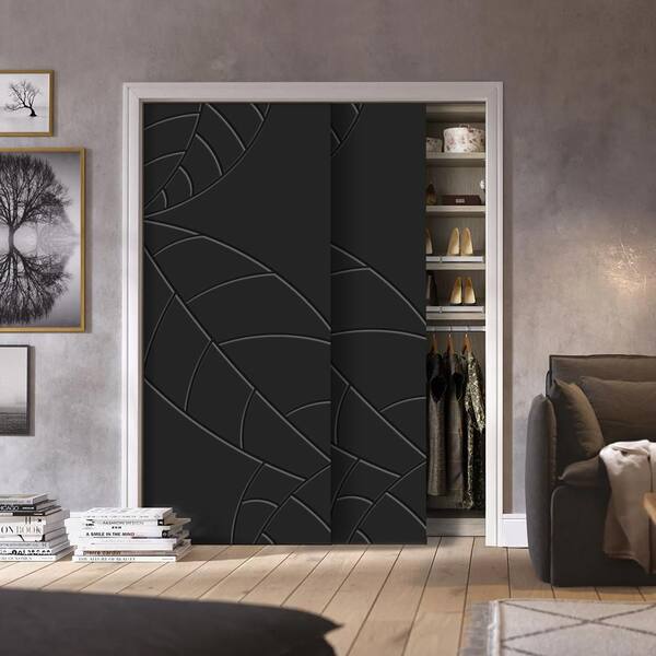 72 in. x 84 in. Hollow Core Black Stained Composite MDF Interior Double Closet Sliding Doors