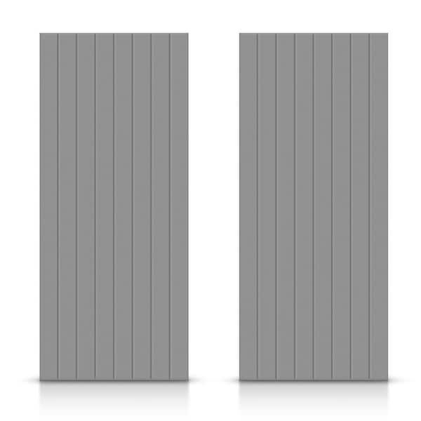72 in. x 84 in. Hollow Core Light Gray Stained Composite MDF Interior Double Closet Sliding Doors