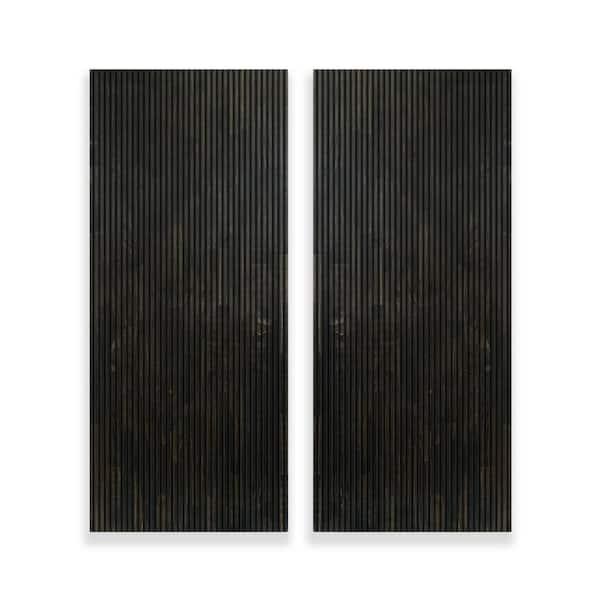 72 in. x 96 in. Japanese Series Pre Assemble Black Stained Pine Wood Interior Double Sliding Closet Doors