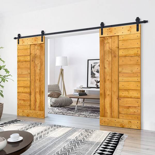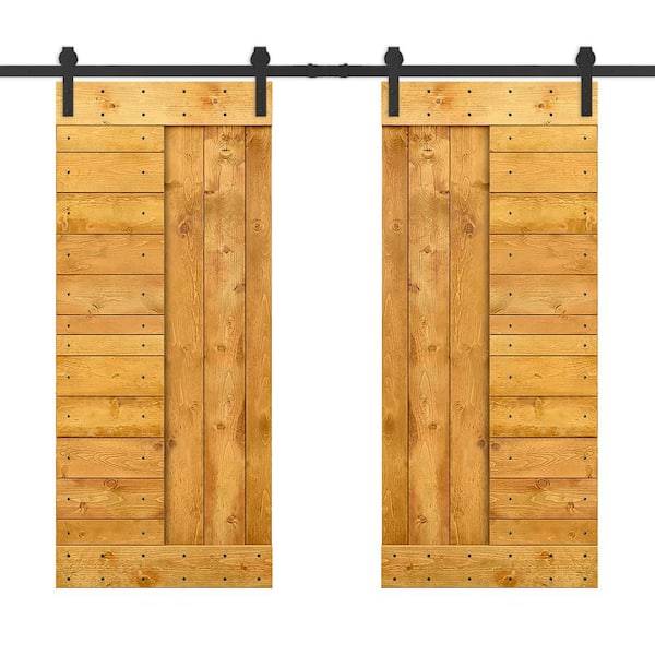 76 in. x 84 in. Colonial Maple Stained DIY Knotty Pine Wood Interior Double Sliding Barn Door with Hardware Kit