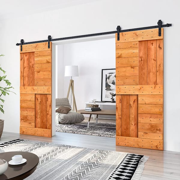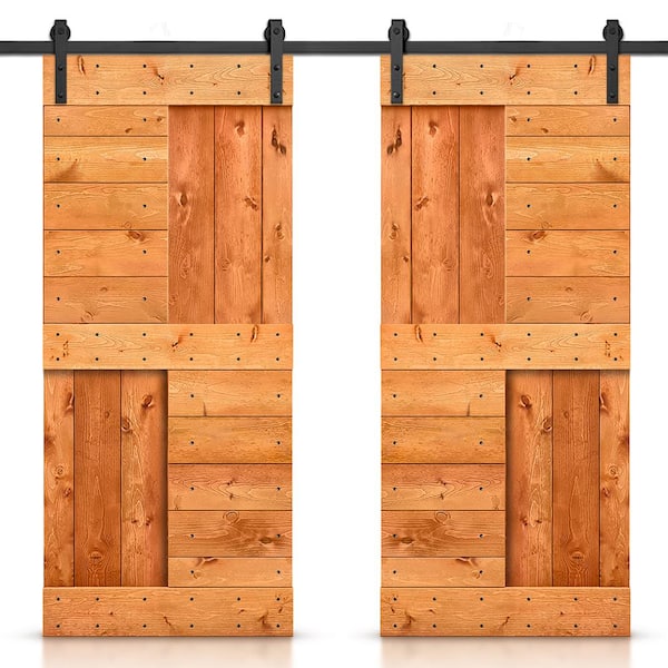 76 in. x 84 in. Red Walnut Stained DIY Knotty Pine Wood Interior Double Sliding Barn Door with Hardware Kit
