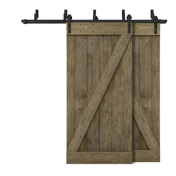 80 in. x 84 in. Z-Bar Bypass Aged Barrel Stained DIY Solid Wood Interior Double Sliding Barn Door with Hardware Kit