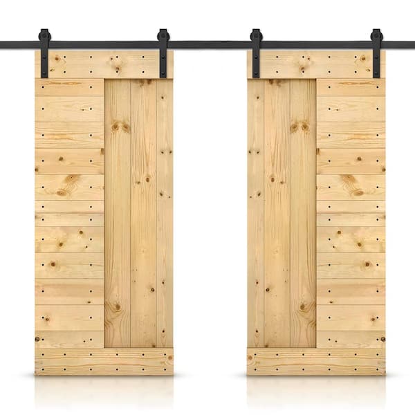 84 in. x 84 in. Unfinished DIY Knotty Pine Wood Interior Double Sliding Barn Door with Hardware Kit