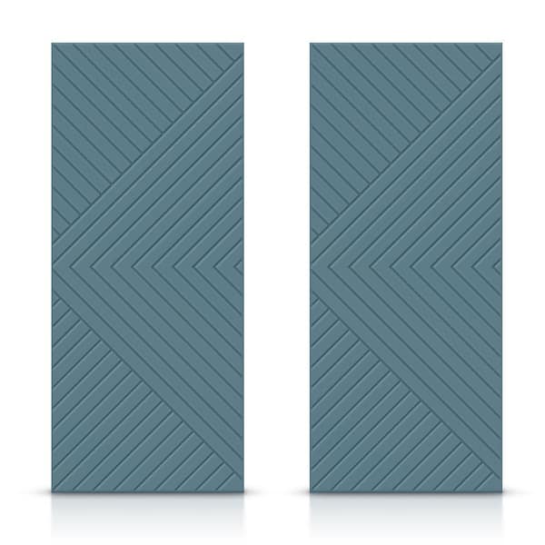 84 in. x 96 in. Hollow Core Dignity Blue Stained Composite MDF Interior Double Closet Sliding Doors