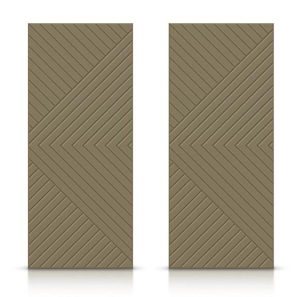 84 in. x 96 in. Hollow Core Olive Green Stained Composite MDF Interior Double Closet Sliding Doors