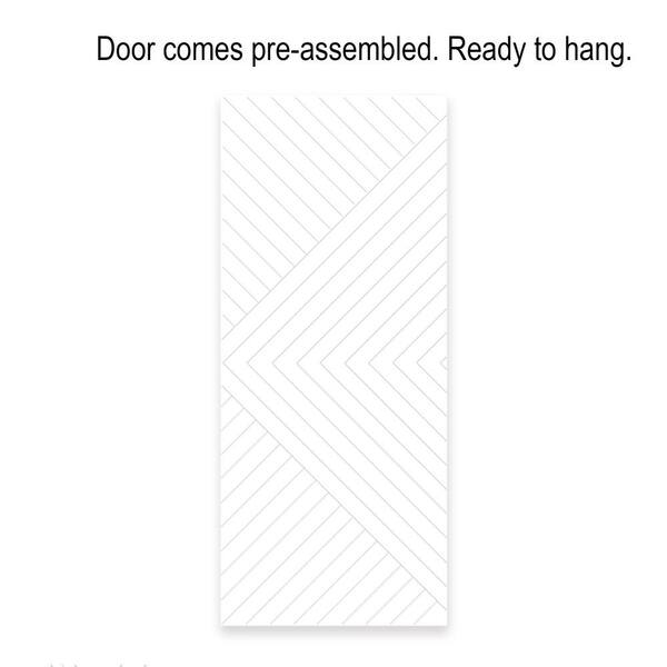 Chevron Arrow 24 in. x 80 in. Fully Assembled White Painted MDF Modern Sliding Barn Door with Hardware Kit