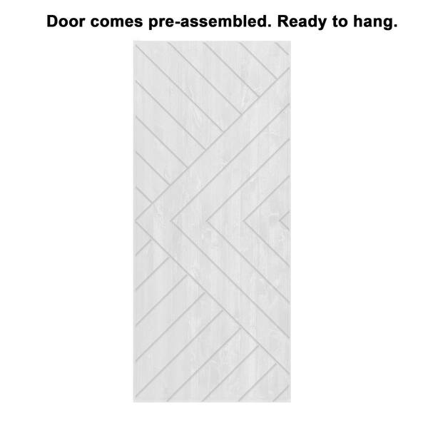 Chevron Arrow 28 in. x 80 in. Fully Assembled White Stained Wood Modern Sliding Barn Door with Hardware Kit