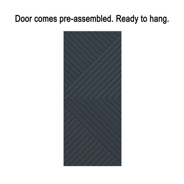 Chevron Arrow 28 in. x 84 in. Fully Assembled Charcoal Gray Painted MDF Modern Sliding Barn Door with Hardware Kit