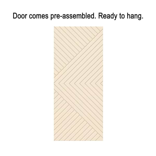 Chevron Arrow 30 in. x 80 in. Fully Assembled Beige Painted MDF Modern Sliding Barn Door with Hardware Kit