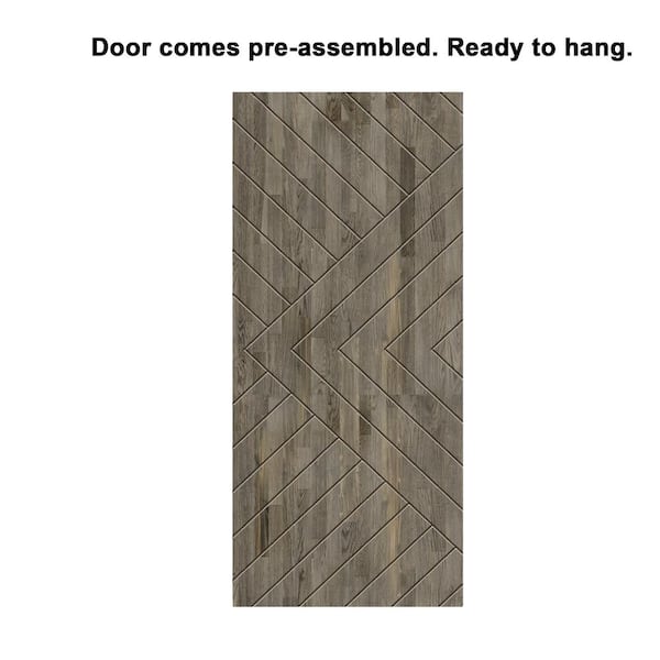 Chevron Arrow 30 in. x 80 in. Fully Assembled Weather Gray Stained Wood Modern Sliding Barn Door with Hardware Kit