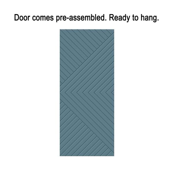Chevron Arrow 32 in. x 80 in. Fully Assembled Dignity Blue Painted MDF Modern Sliding Barn Door with Hardware Kit
