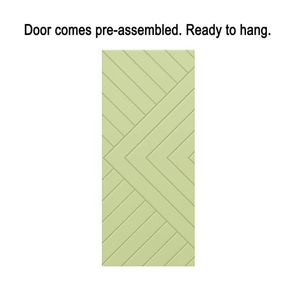 Chevron Arrow 32 in. x 80 in. Fully Assembled Sage Green Painted MDF Modern Sliding Barn Door with Hardware Kit