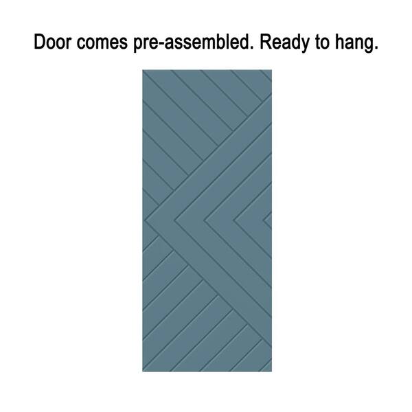 Chevron Arrow 34 in. x 84 in. Fully Assembled Dignity Blue Painted MDF Modern Sliding Barn Door with Hardware Kit