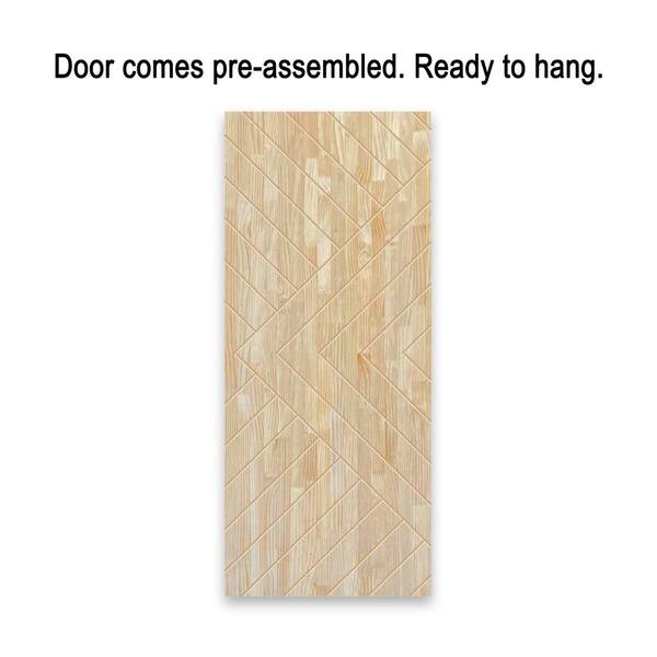 Chevron Arrow 34 in. x 84 in. Fully Assembled Natural Wood Unfinished Modern Sliding Barn Door with Hardware Kit