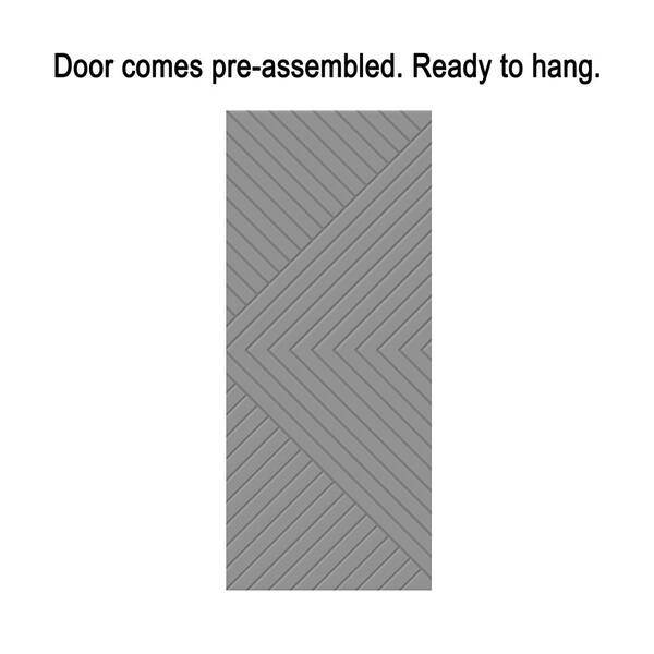 Chevron Arrow 34 in. x 96 in. Fully Assembled Light Gray Painted MDF Modern Sliding Barn Door with Hardware Kit