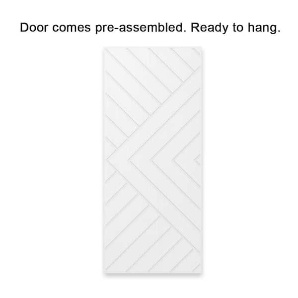 Chevron Arrow 38 in. x 84 in. Fully Assembled White Painted MDF Modern Sliding Barn Door with Hardware Kit