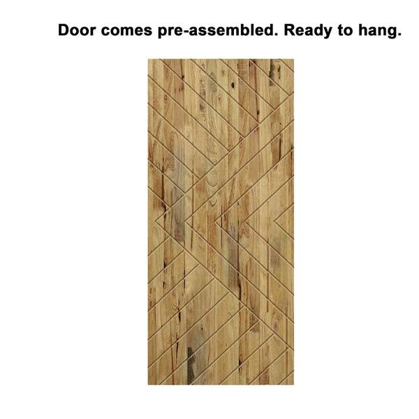 Chevron Arrow 40 in. x 84 in. Fully Assembled Weather Oak Stained Wood Modern Sliding Barn Door with Hardware Kit