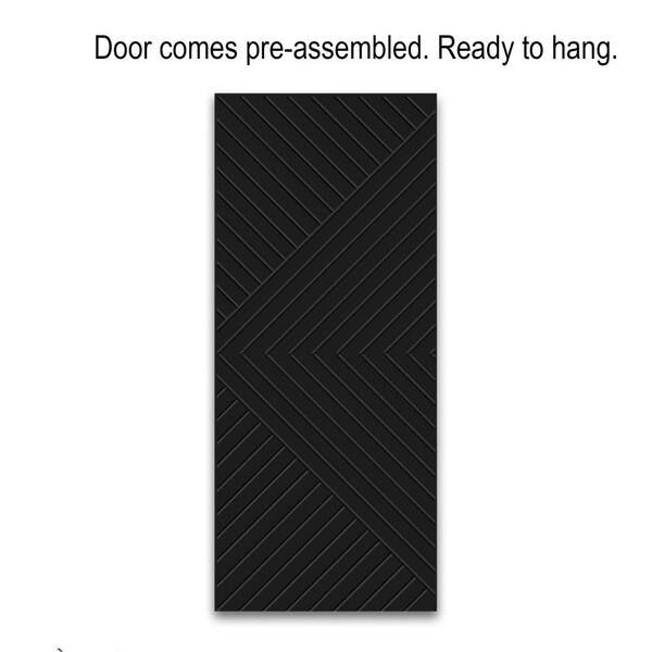 Chevron Arrow 42 in. x 84 in. Fully Assembled Black Painted MDF Modern Sliding Barn Door with Hardware Kit