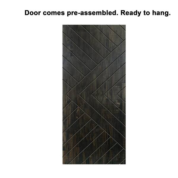 Chevron Arrow 44 in. x 96 in. Fully Assembled Charcoal Black Stained Wood Modern Sliding Barn Door with Hardware Kit
