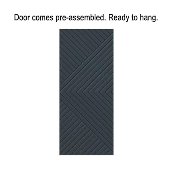 Chevron Arrow 44 in. x 96 in. Fully Assembled Charcoal Gray Painted MDF Modern Sliding Barn Door with Hardware Kit