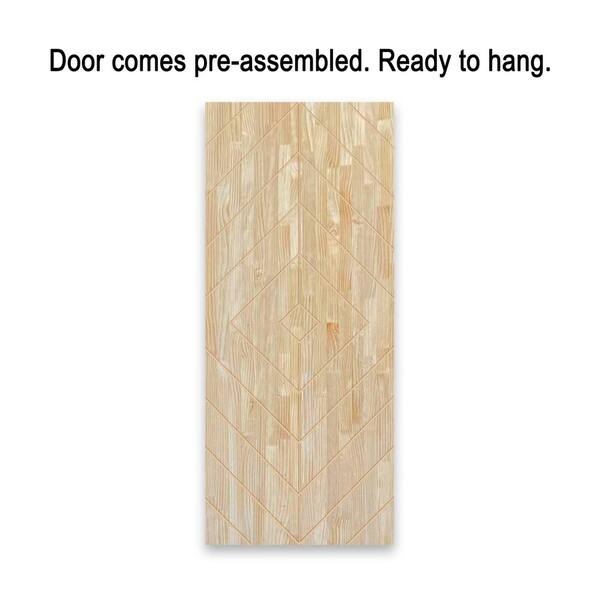 Diamond 24 in. x 80 in. Fully Assembled Natural Pine Wood Unfinished Modern Sliding Barn Door with Hardware Kit