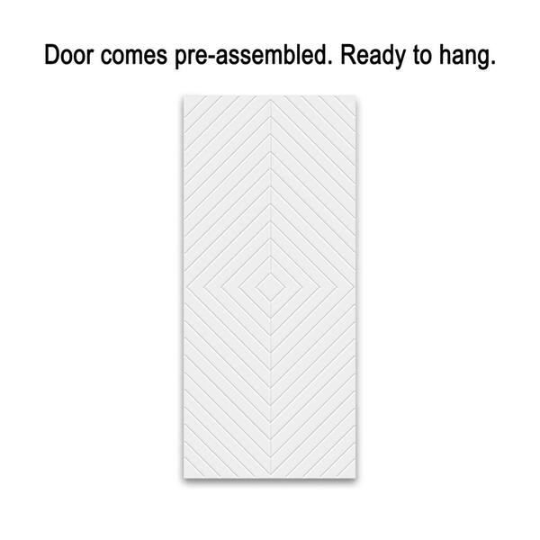 Diamond 30 in. x 80 in. Fully Assembled White Painted MDF Modern Sliding Barn Door with Hardware Kit