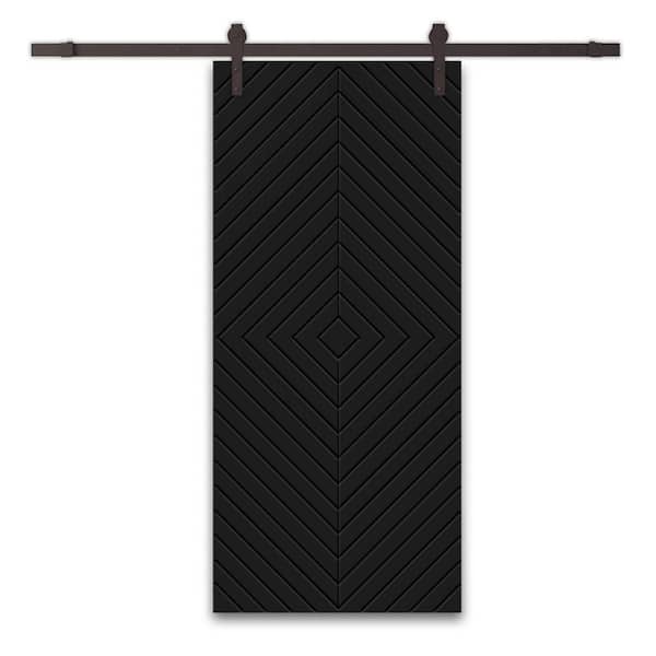 Diamond 30 in. x 84 in. Fully Assembled Black Painted MDF Modern Sliding Barn Door with Hardware Kit