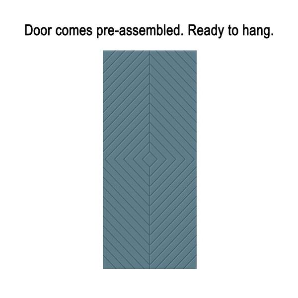 Diamond 30 in. x 84 in. Fully Assembled Dignity Blue Painted MDF Modern Sliding Barn Door with Hardware Kit