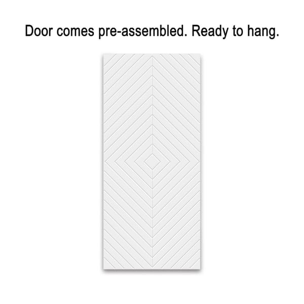 Diamond 30 in. x 96 in. Fully Assembled White Painted MDF Modern Sliding Barn Door with Hardware Kit