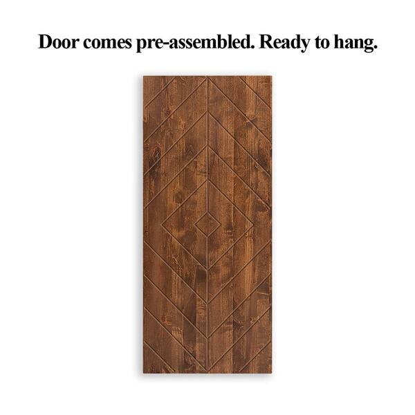 Diamond 36 in. x 96 in. Fully Assembled Solid Core Walnut Stained Wood Modern Sliding Barn Door with Hardware Kit