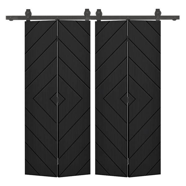 Diamond 40 in. x 80 in. Hollow Core Black Painted MDF Composite Bi-Fold Double Barn Door with Sliding Hardware Kit