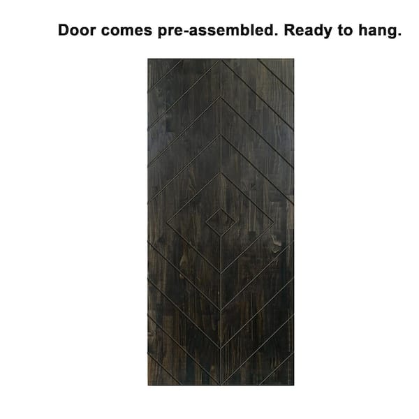 Diamond 42 in. x 84 in. Fully Assembled Charcoal Black Stained Wood Modern Sliding Barn Door with Hardware Kit